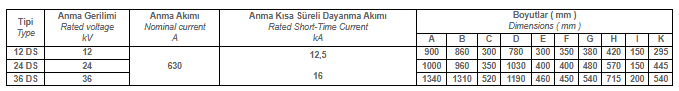 • 12-17.5 – 36 kV, harici ve toprak ayırıcıları olmak üzere 1250A’e (dahil) kadar çeşitleri bulunmaktadır.